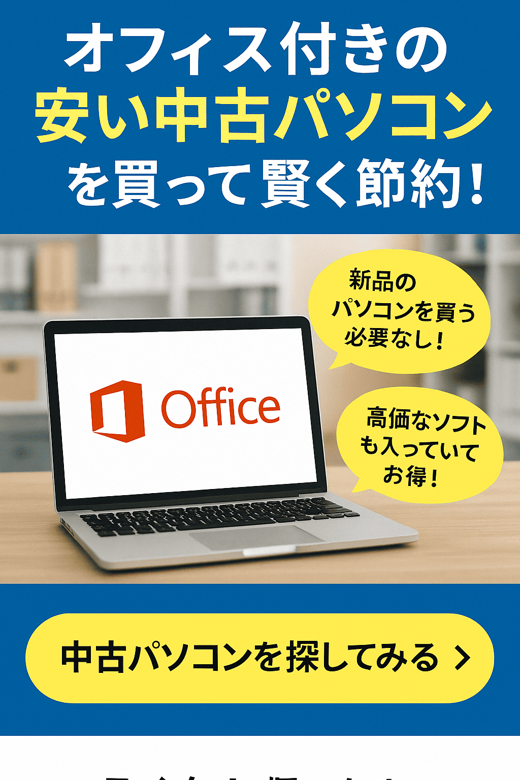 実は、企業の入れ替えやリース契約終了で大量に放出された業務用PCを、専門業者が整備・初期化して販売しているからです。新品よりも性能・機能が十分で、Microsoft Officeが正規インストール済み。事務作業や学習用、在宅ワークにもすぐ活用できます。予算を抑えつつ、安心して使える1台を手に入れるチャンスです。